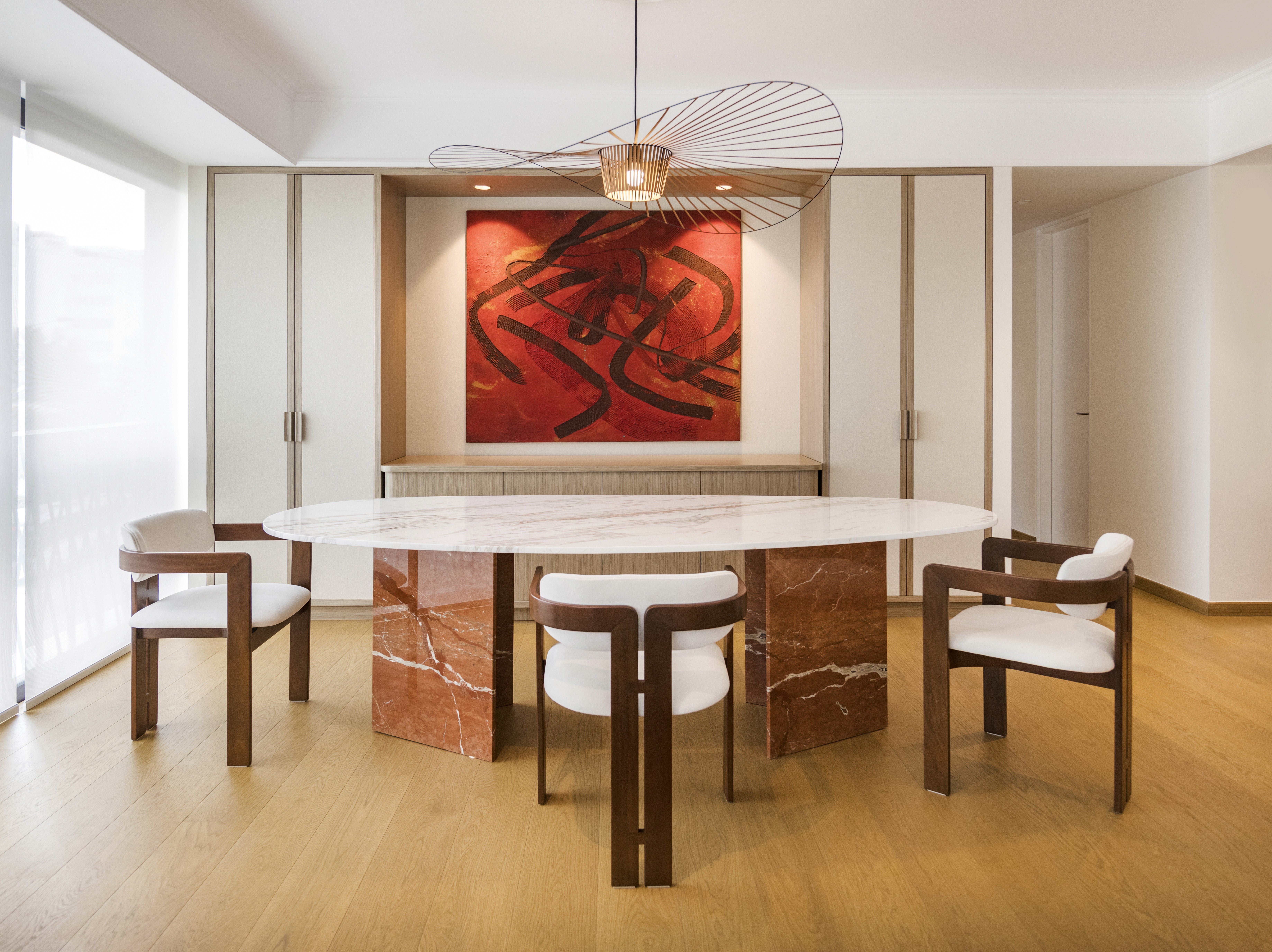 One of the studio’s early works, where its soul begins to take shape—understood as a manifesto of synthesis, art, and spatial sensitivity. Materials are expressed with intention, while custom furniture establishes a continuous language. The presence of different stones articulates the connection between spaces, adding texture, character, and a precise chromatic accent that balances the composition. A project where every detail is a gesture and every surface, an invitation to feel.