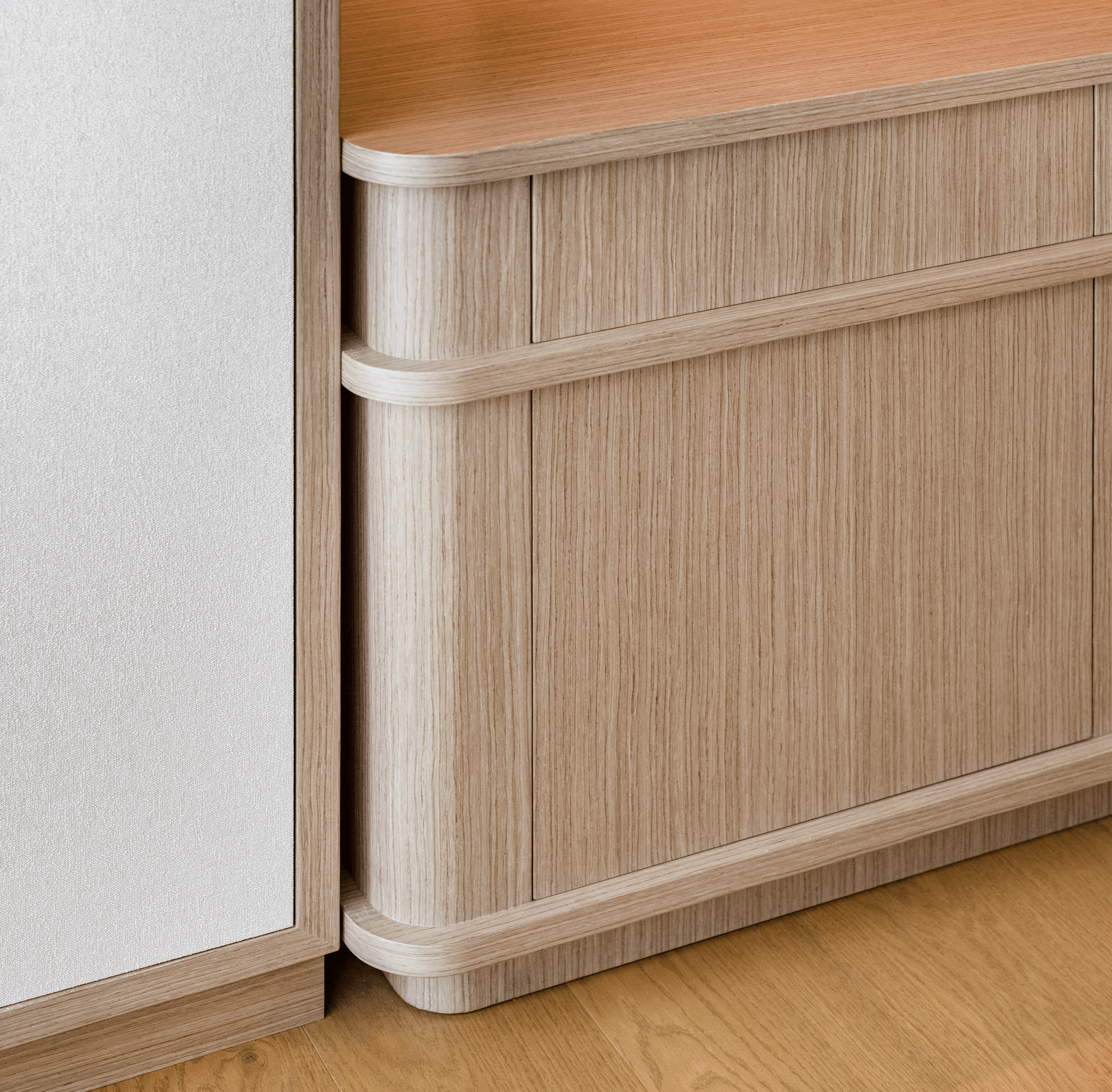 The bar becomes a poetic scene: when opened, reflections multiply bottles and glasses, creating an infinite play where the user discovers themselves immersed in the space. A moment of contemplation where design and experience merge.