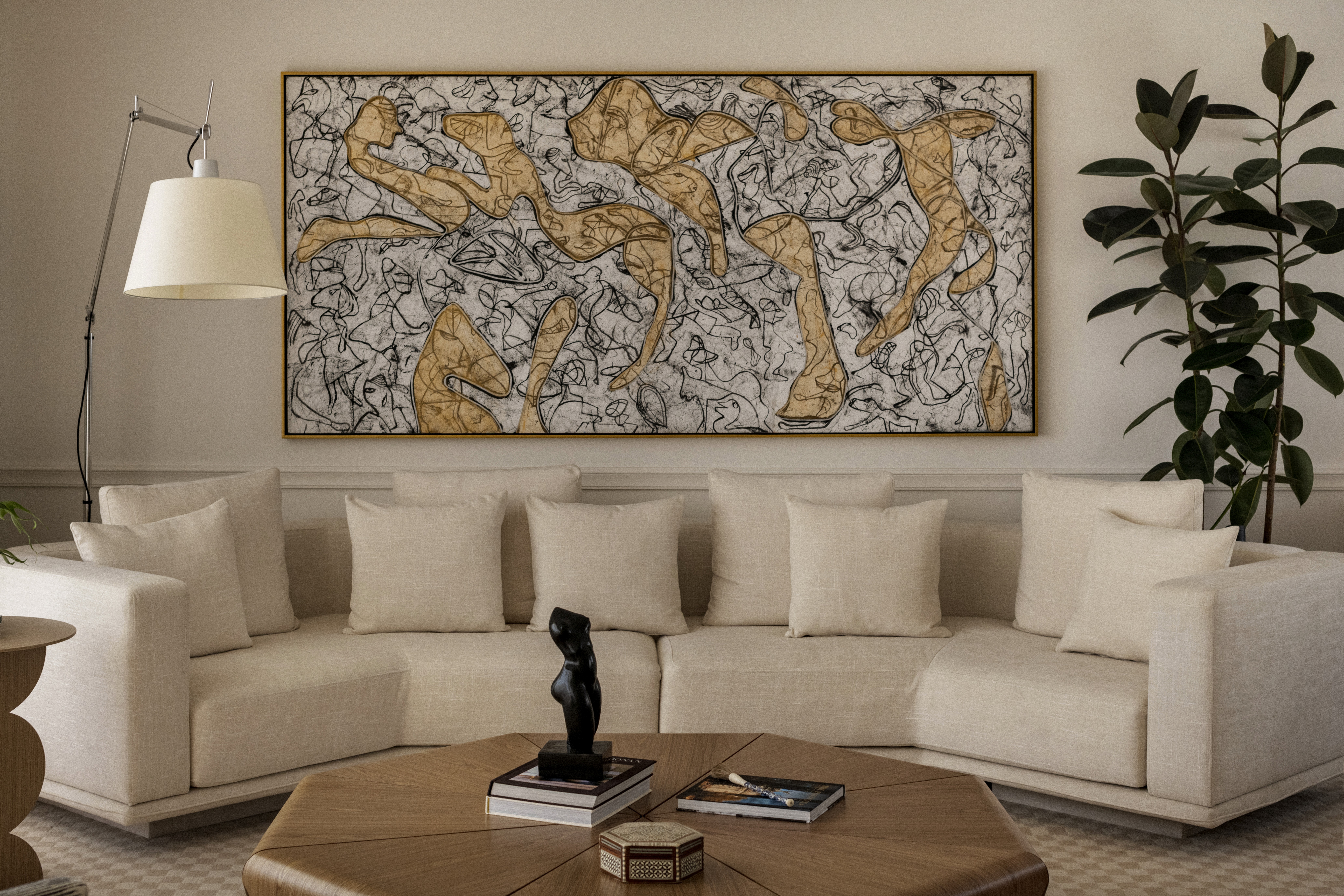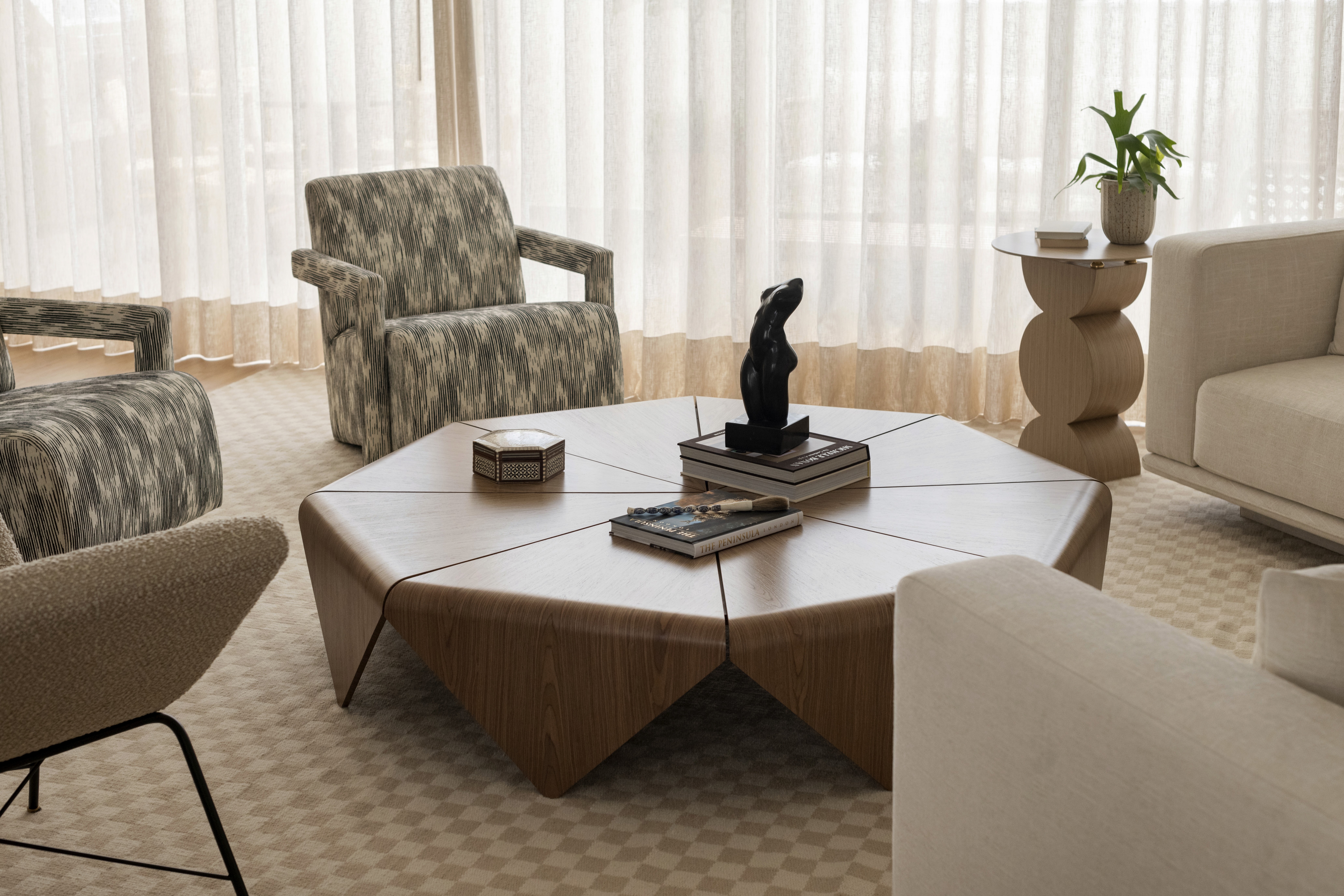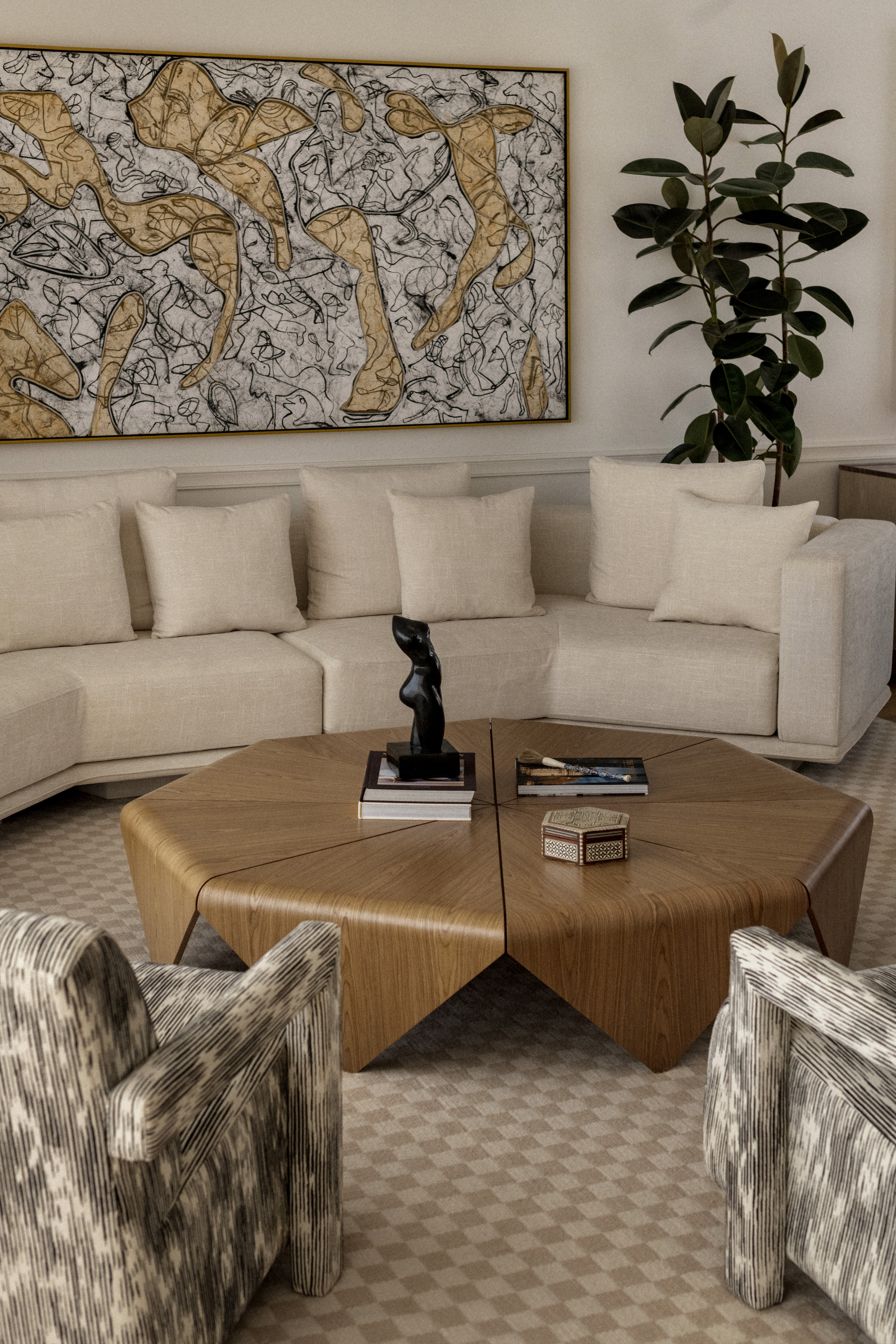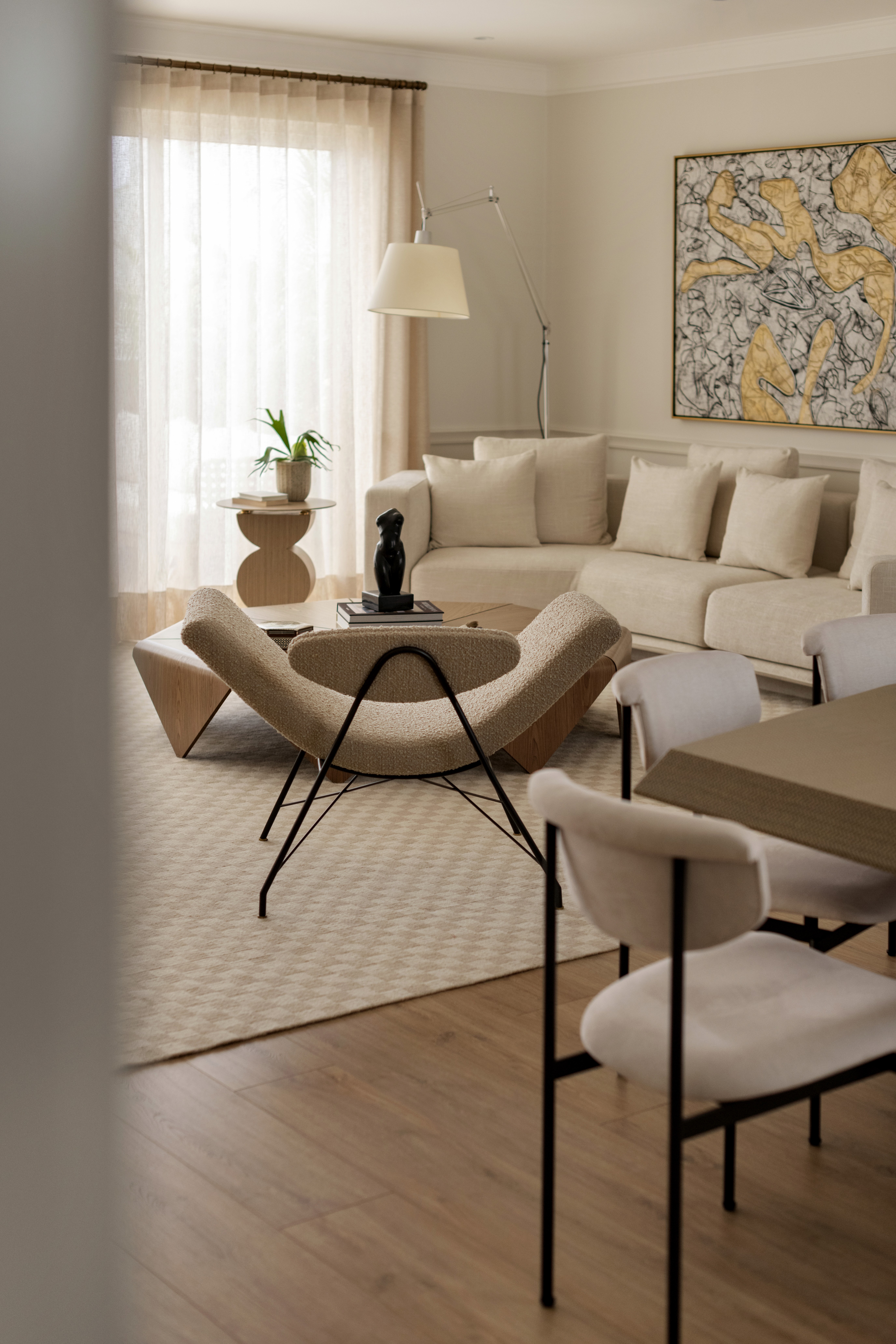 Each space invites exploration through layers of textures that engage in dialogue, giving rise to a serene, sensitive, and profoundly human domestic experience.
