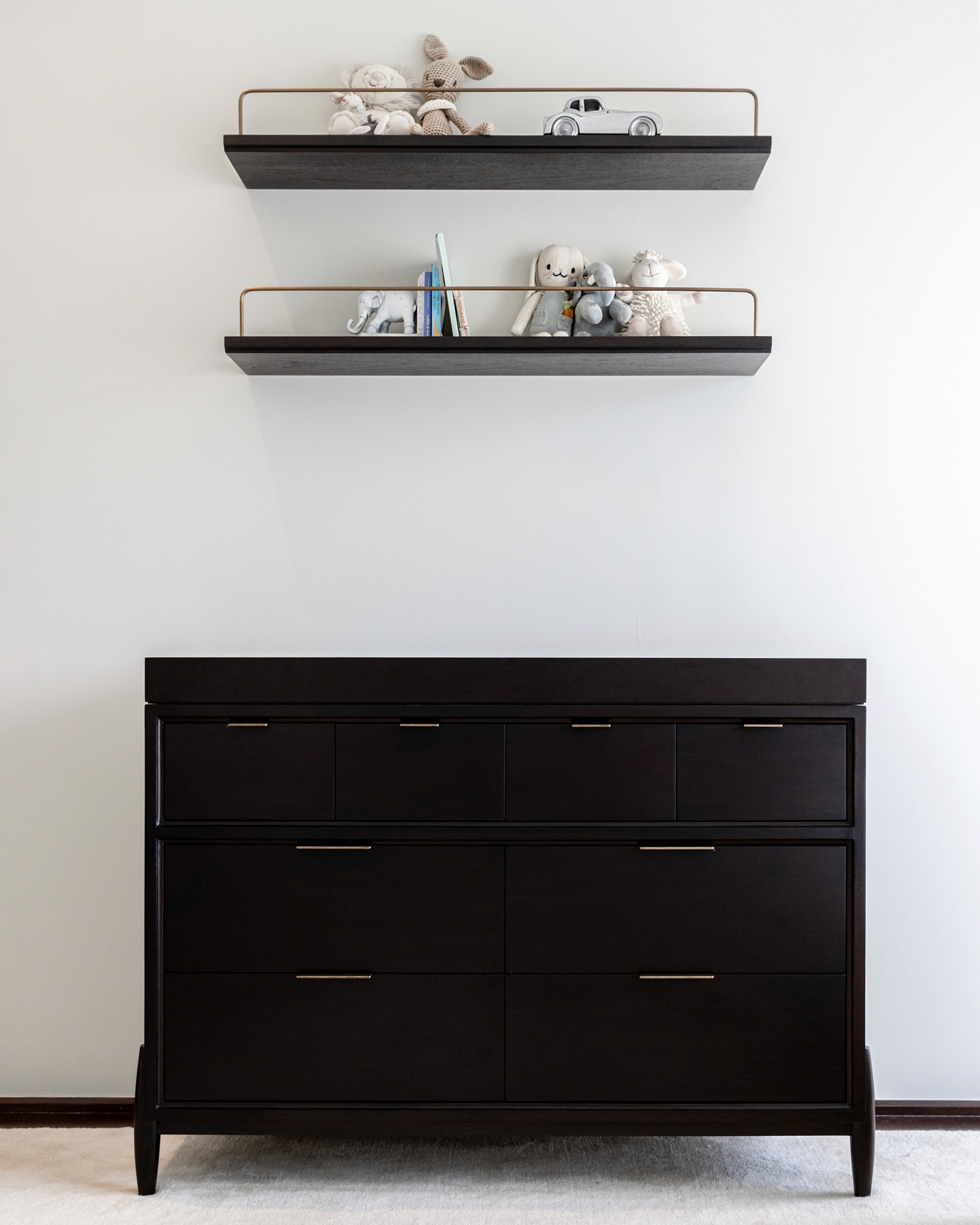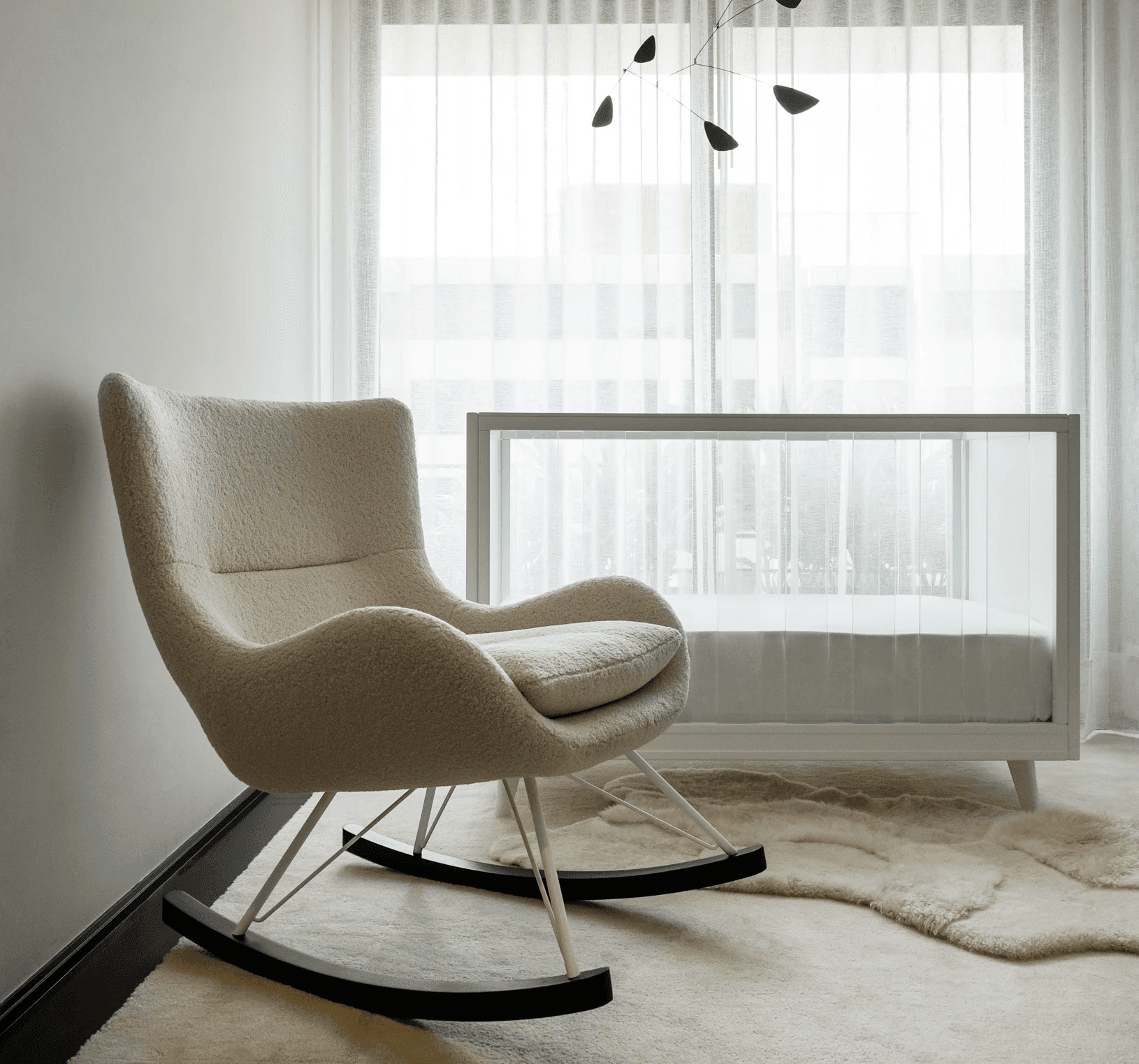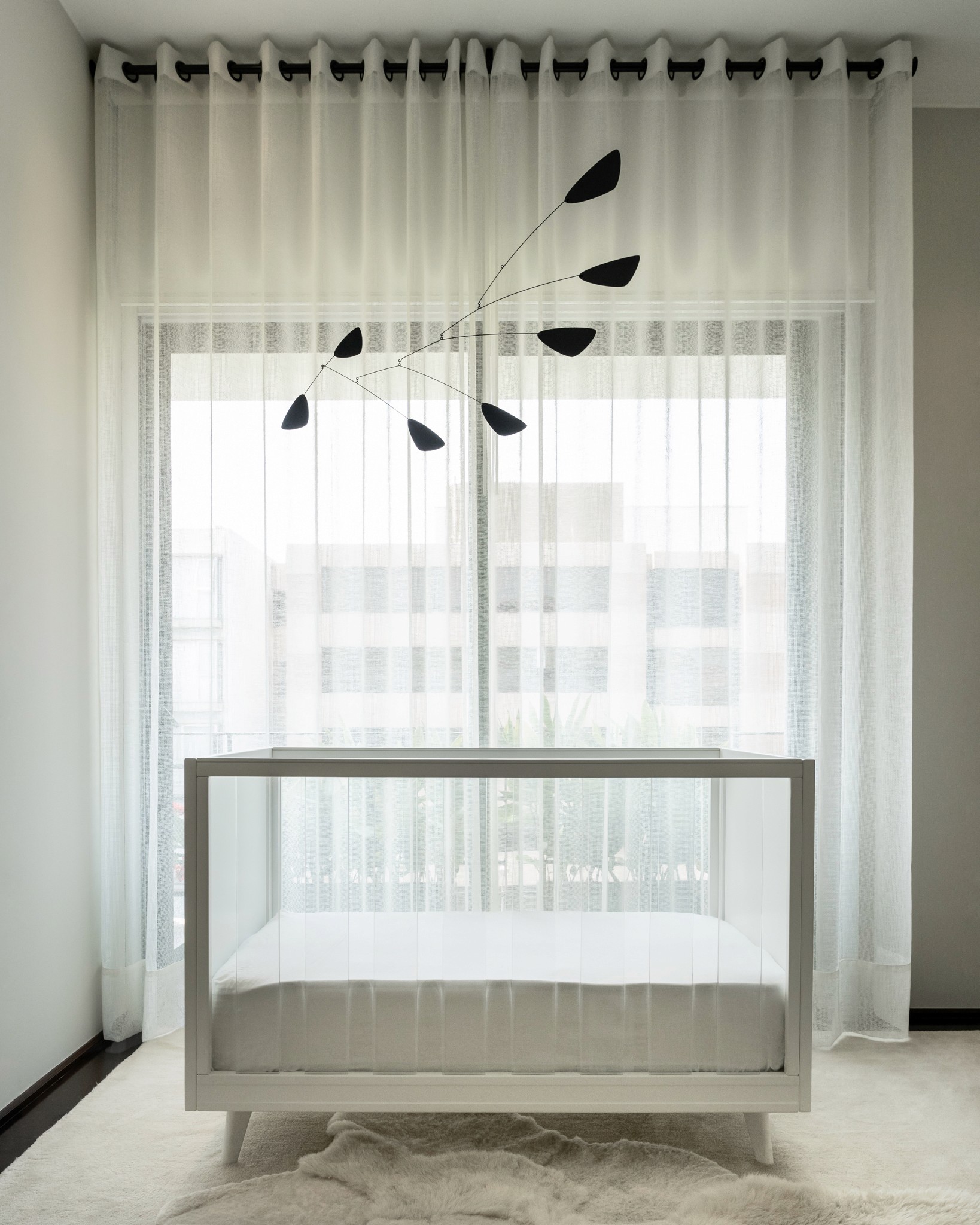 A new way of thinking about a baby’s room: more honest, more architectural. Far from conventional infantilization, the project brings together materials, color, art pieces, and a custom-designed crib to create a balanced, restrained space with a strong sense of identity.