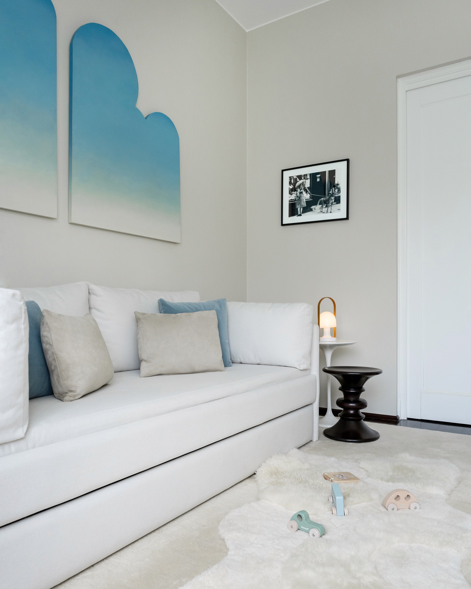 The project preserves the warmth of childhood without sacrificing clarity or order. A precise balance between space, color, and objects—from the Calder mobile above the crib to the chromatic gestures in the artwork—everything comes together in a coherent, calm, and character-driven composition.